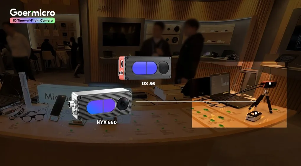 工业应用方面,此次展示的的DS 86 ToF相机支持640×480分辨率深度成像,能够提供稳定、高精度的深度测量数据,适用于工业拆码垛、体积测量、农业机器人等应用环境下的静态或慢动态三维感知任务;NYX 660 ToF相机专为动态场景及光照复杂环境而设计,具有30fps高帧率和强抗光性优势,且配有IP67防水防尘等级外壳,可为AGV机器人导航,为智能安防、客流统计等应用场景提供实时视觉支持。